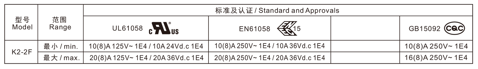 电气参数和认证 Electric Rating and Certification