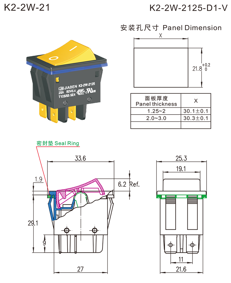 K2-2W series are one standard type rocker switches, optional many kinds of types, specially inner structure for dustproof and waterproof without Protection Cap, specially for used in DC high rated power tools and gardening tools such as: Cordless Bench Grinders, Cordless Electric Lawnmowers, Cordless Electric High Pressure Washers, etc.