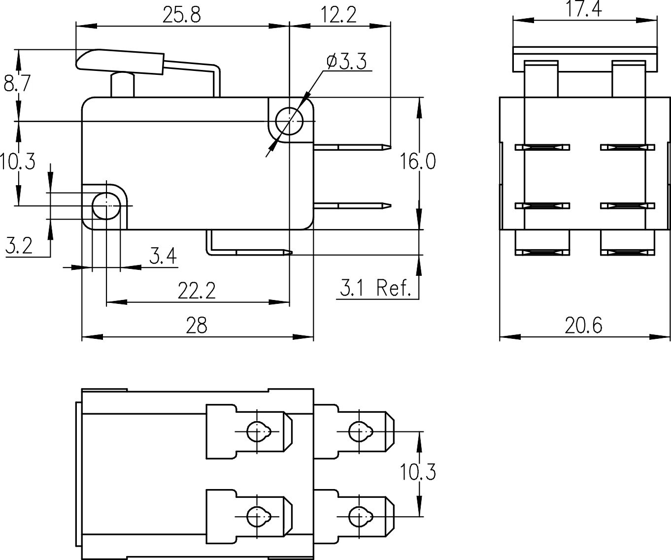 →插片端子 Plug-in terminals 4.8×0.6mm