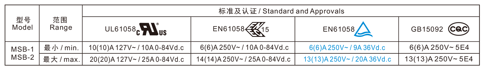 电气参数和认证 Electric Rating and Certification