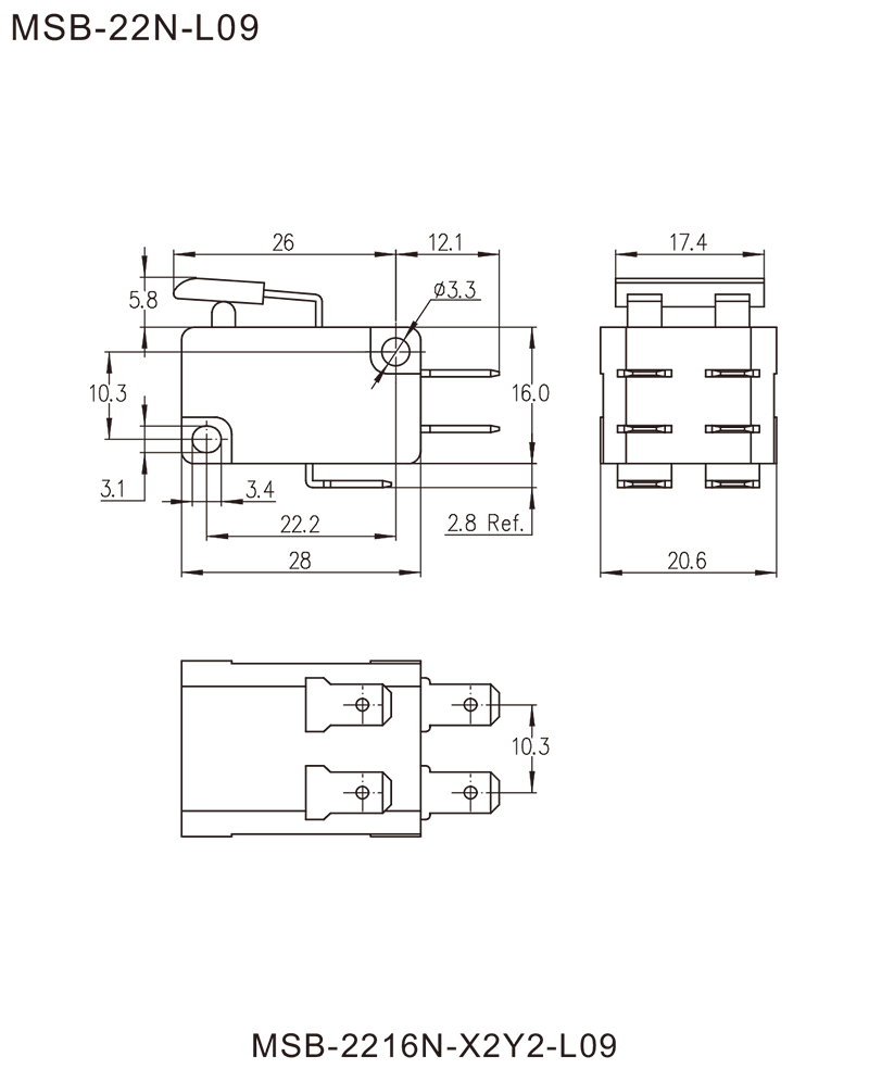 →开关内部触点间隙 Contact gap range0.8~3.0mm