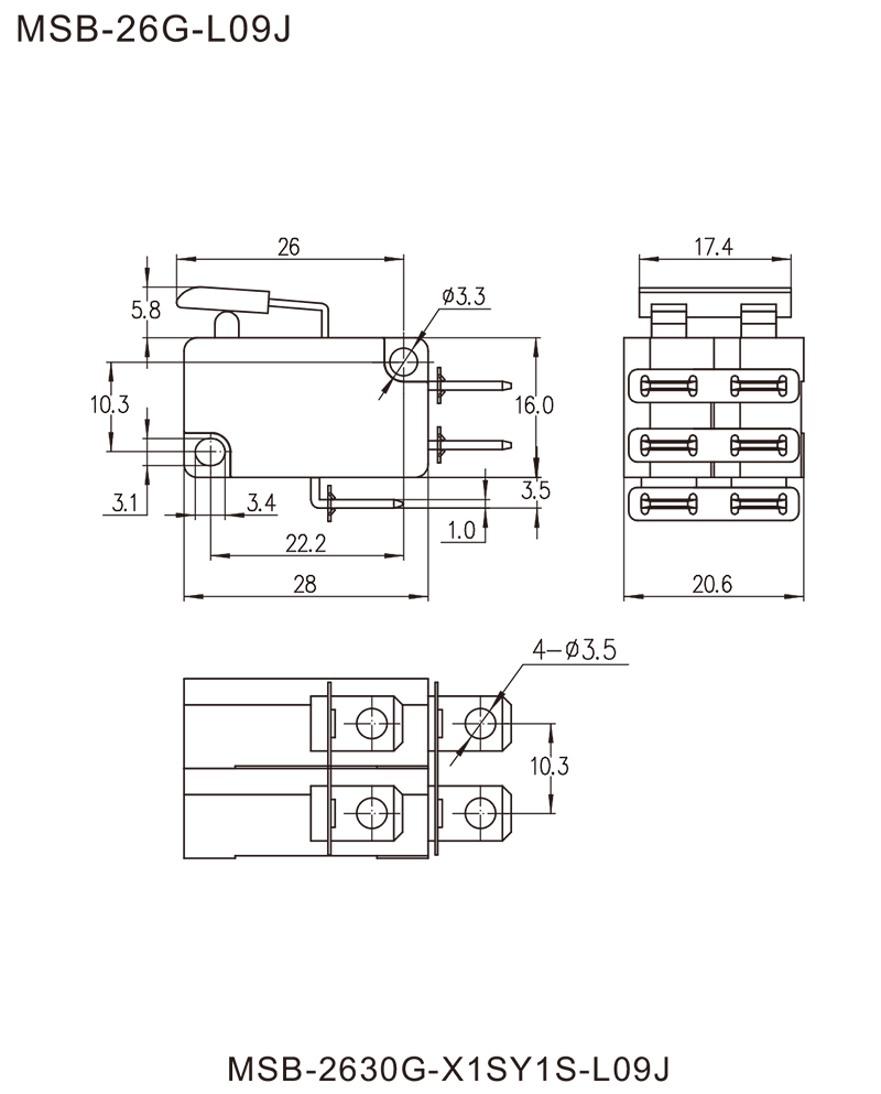◆MSB-G系列是一款标准型的微动开关,是MSB系列的高额定值版,有微断开和≥3.0mm两种触点间隙可以选择,可选防尘款内部加装密封圈,特别适用于各类高电压大电流的直流电动工具和园林工具,如:42Vd.c及以上直流斜切锯、42Vd.c及以上直流高压清洗机、42Vd.c及以上直流打草机、42Vd.c及以上直流修枝剪、42Vd.c及以上直流吹风机、42Vd.c以上直流电链锯等等。