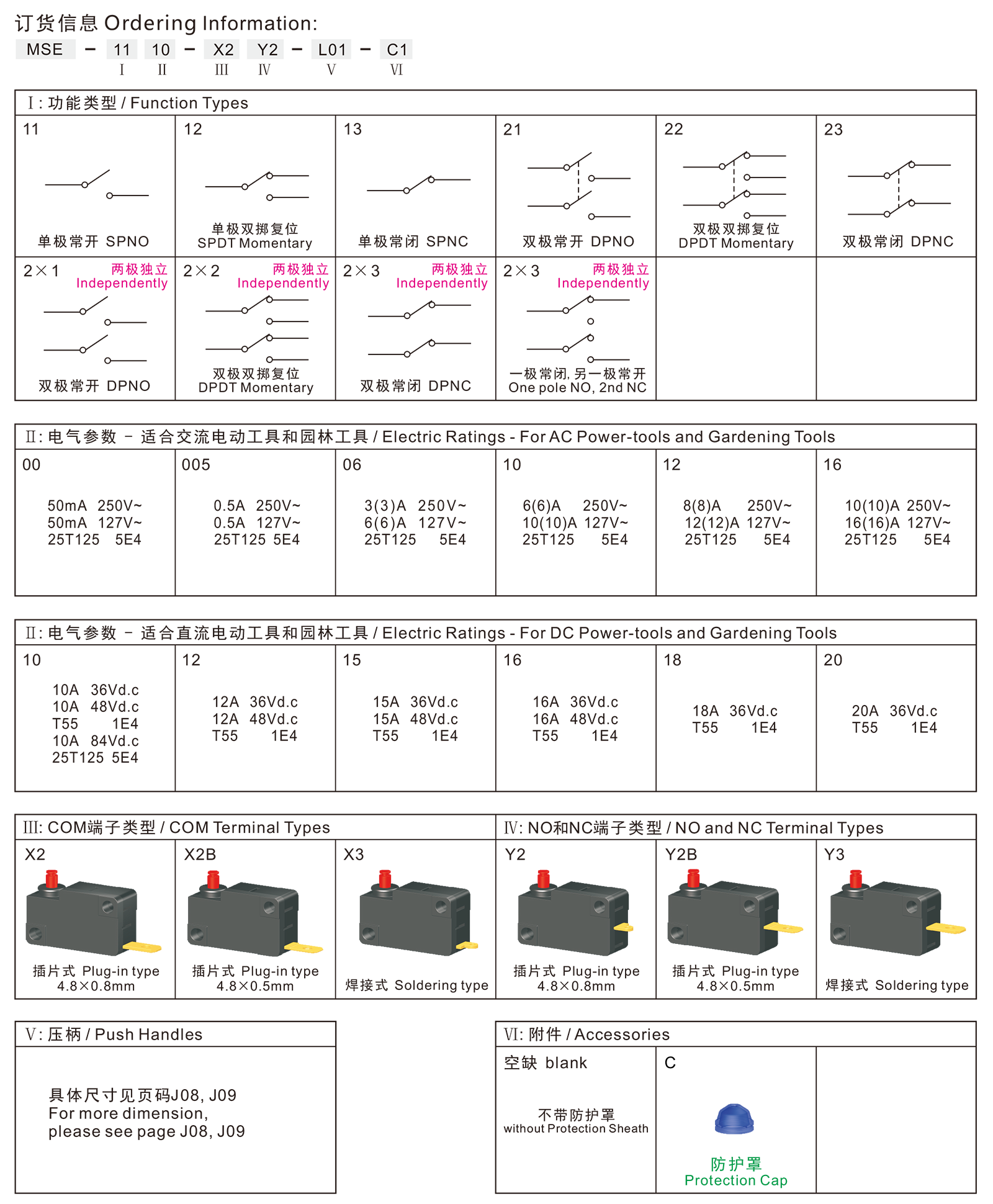MSE series are one special type micro switches, with dustproof function when employ protection cap, commonly for used in portable power-tools and gardening tools, such as Sanders,Polisher Grinders, 100mm and 125mm Small Angle Grinders,Small Circular Saws, Small Miter Saws, Electric Sprayers, Grass Trimmers, Electric Chain Saws, etc.