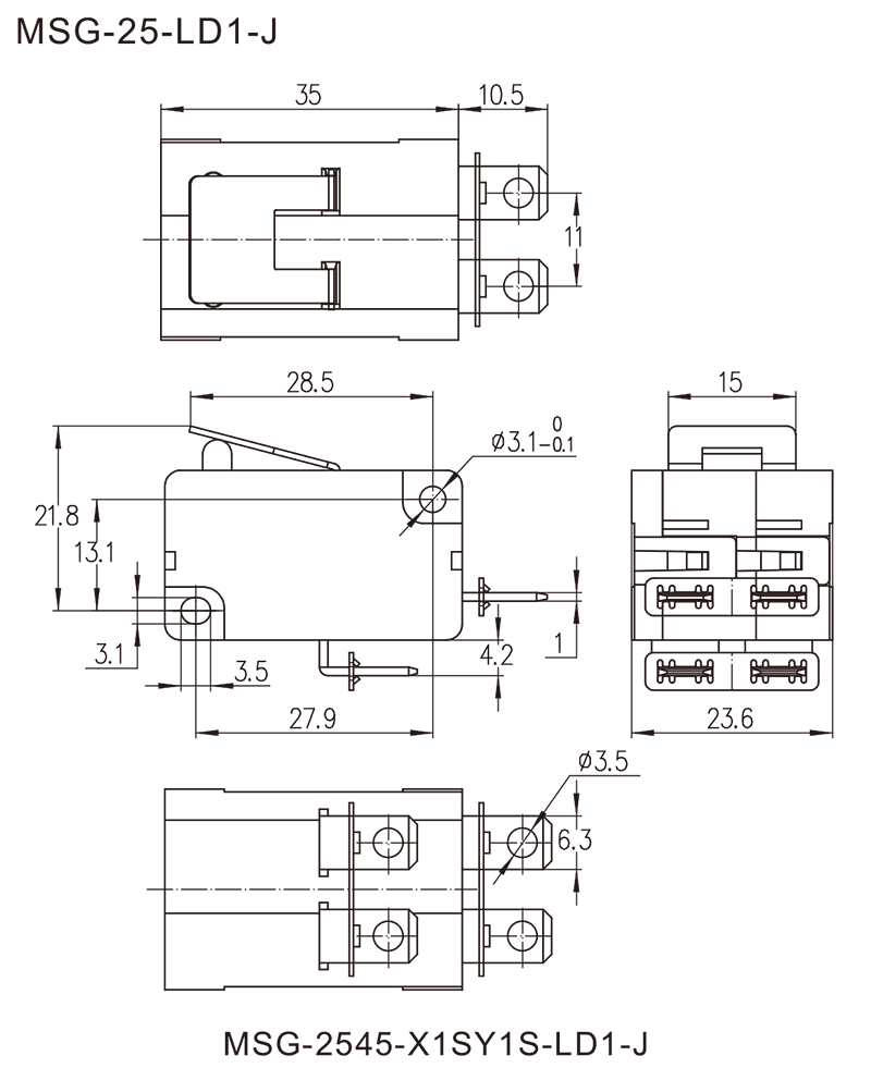 →插片端子 Plug-in terminals 6.3×0.8mm