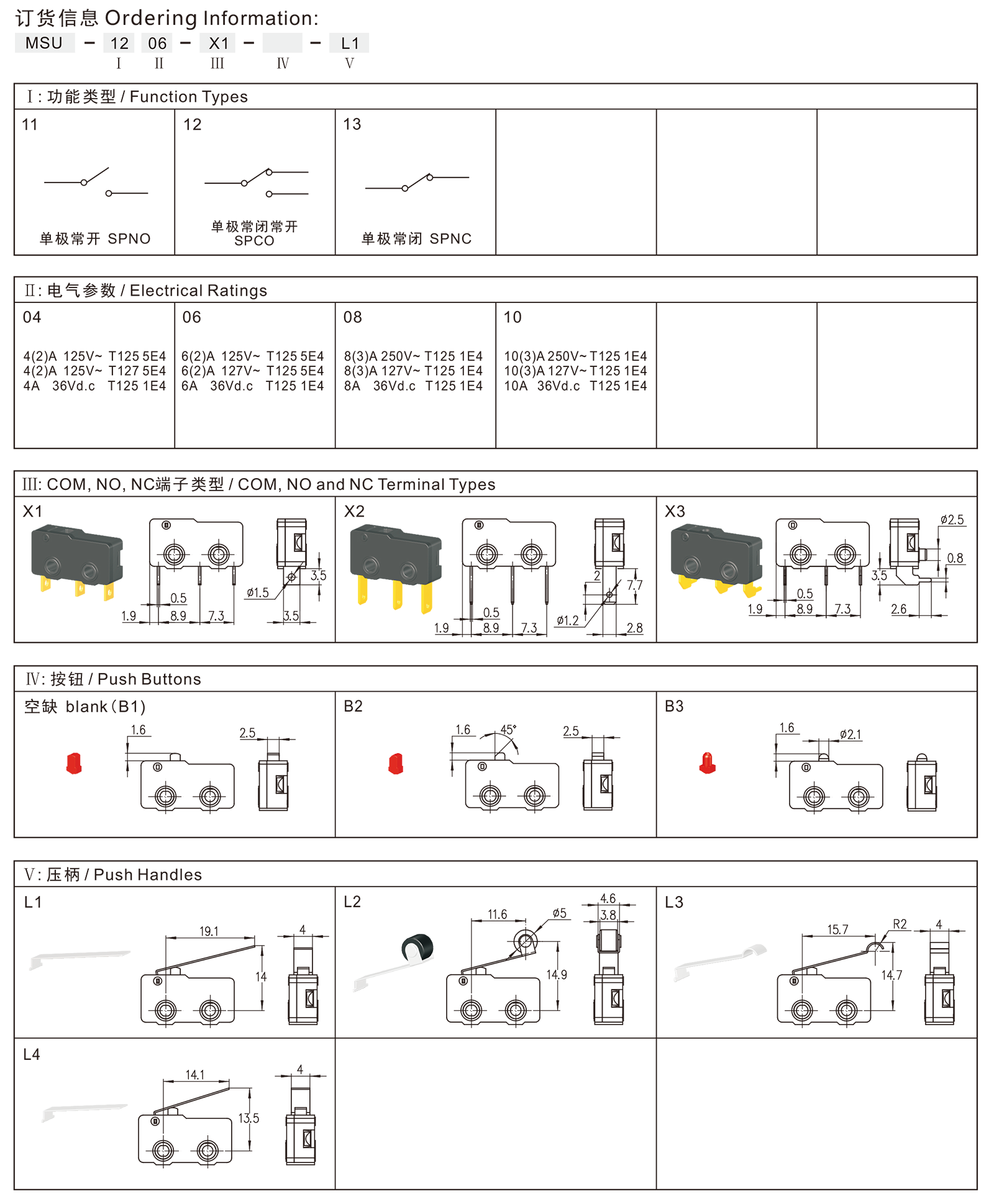 MSU系列是一款标准的小型微动开关,可用于小型手持电动工具和家用电器,如:小型充电式螺丝起子、迷你型直流修枝剪、豆浆机、电动榨汁机等。