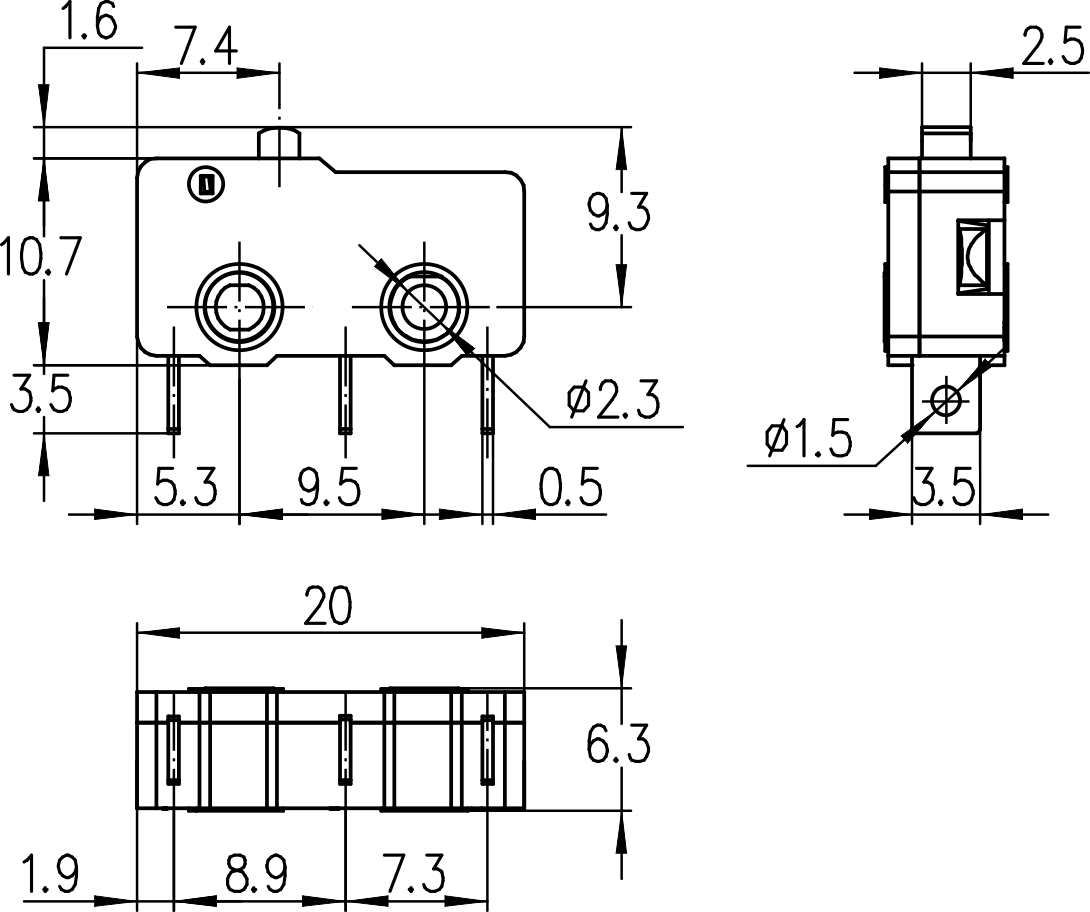 →开关内部触点间隙 Contact gap0.8~1.0mm