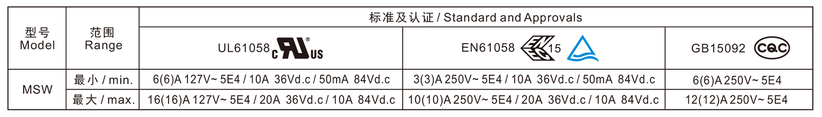 电气参数和认证 Electric Rating and Certification