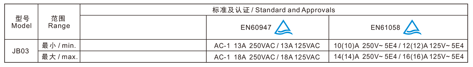 电气参数和认证 Electric Rating and Certification