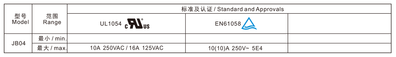 电气参数和认证 Electric Rating and Certification