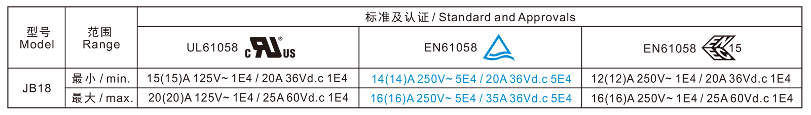 电气参数和认证 Electric Rating and Certification