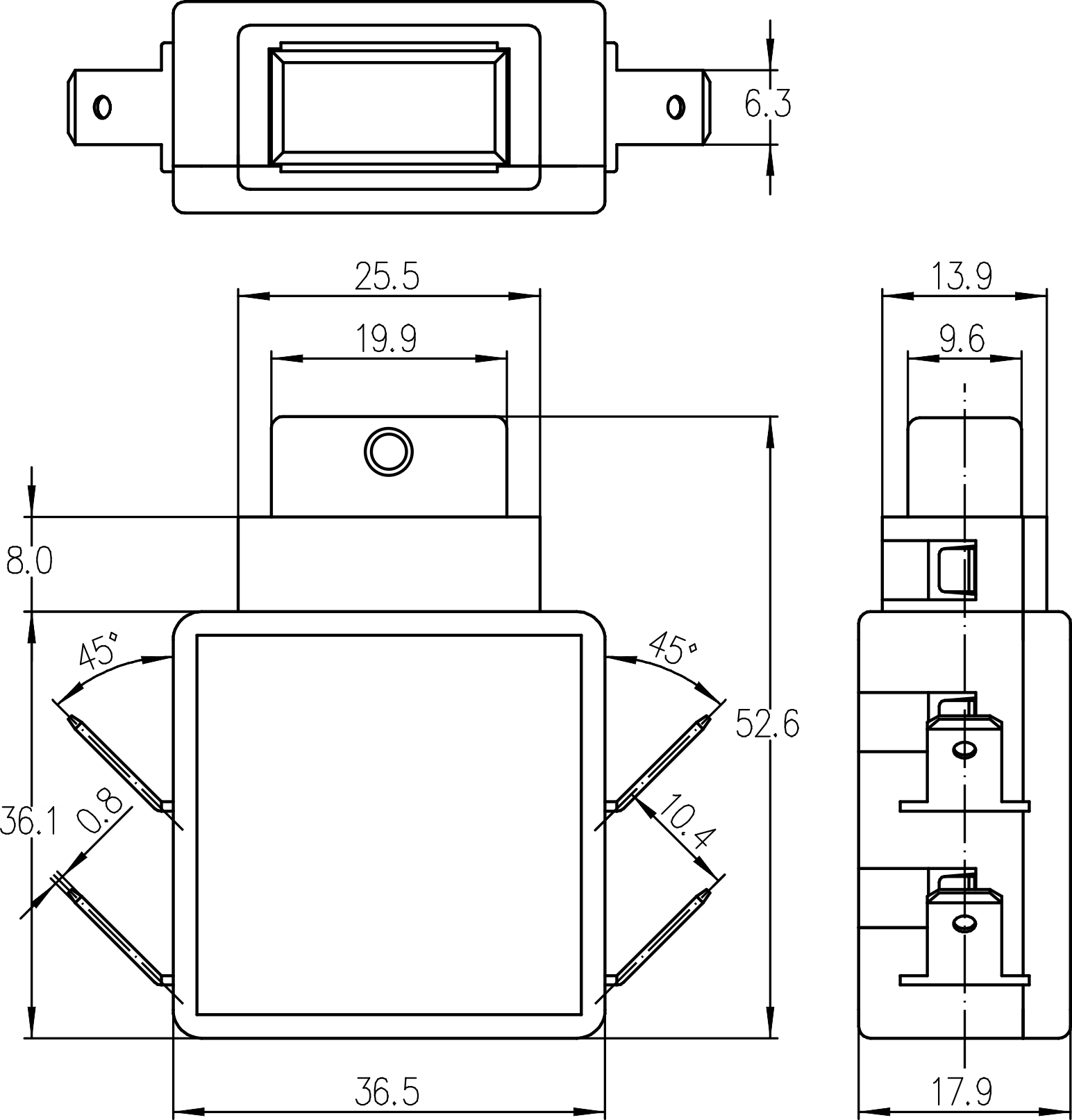 →插片端子 Plug-in terminals 6.3×0.8mm