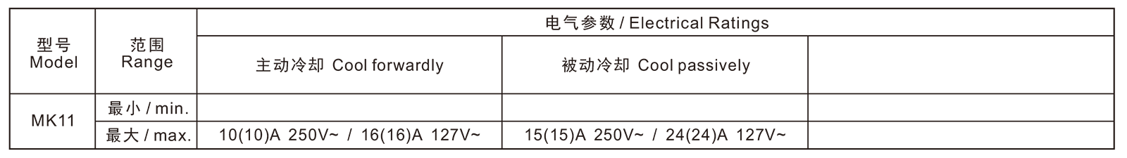 →最大电流 Max. current at 250V15A