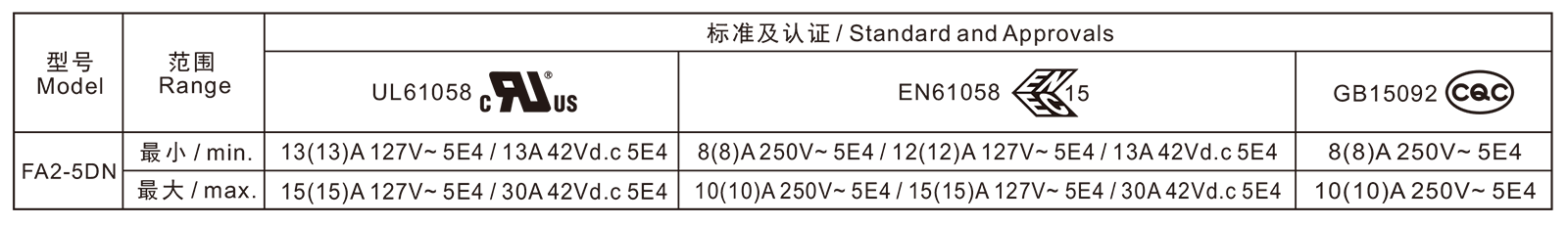 电气参数和认证 Electric Rating and Certification