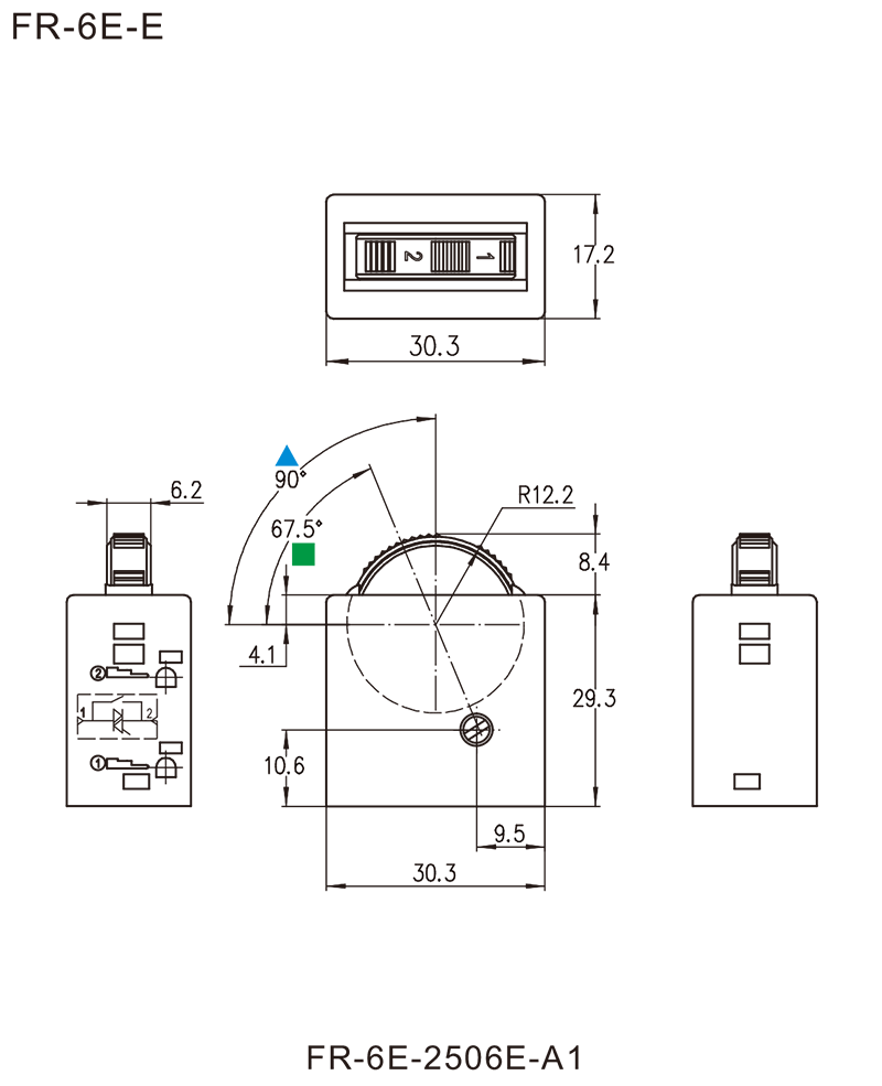 ■可选转盘一档印字与壳体上表面成90°