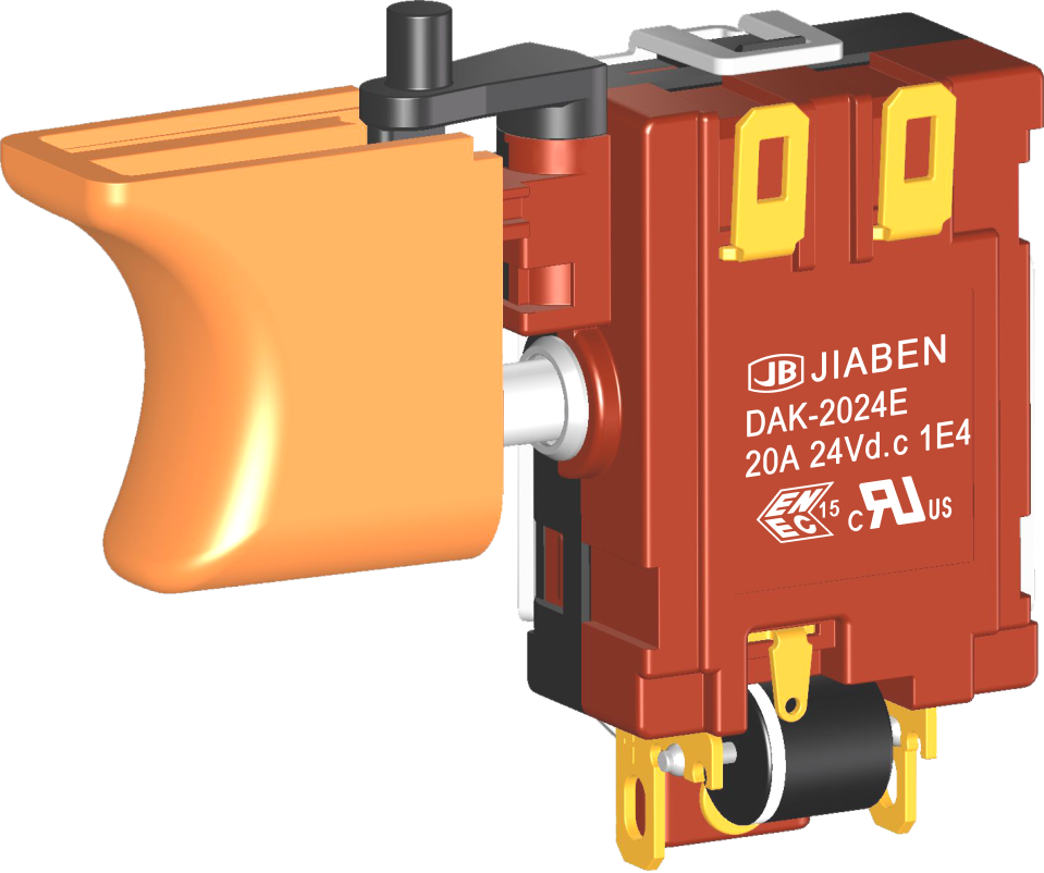 DAK series are one general type DC variable speed trigger switches,integrated dustproofmechanical brake contact and reversing box, commonly for used in DC cordless portable power-tools such as: Cordless Drills, Cordless Screw Drivers, Cordless Rotary Hammers, Cordless Impact Wrenches, etc.