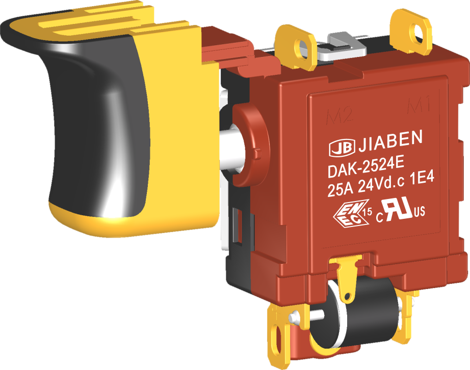 DAW series are one general type DC variable speed trigger switches, integrated dustproof and mechanical brake contact,without reversing box, commonly for used in DC portable power-tools and gardening tools such as: Cordless Rotary Hammers,Cordless Reciprocating Saws, Cordless Jig Saws, Cordless Angle Grinders, Cordless Grass Trimmers, Cordless Blowers, etc.