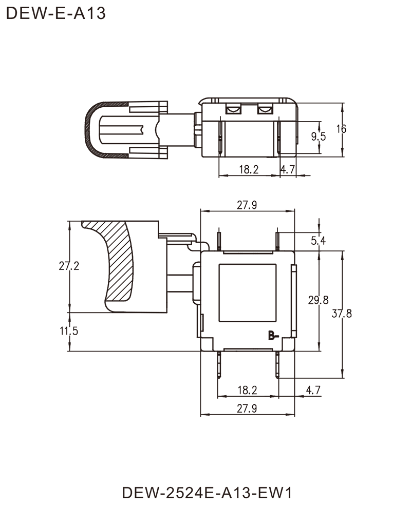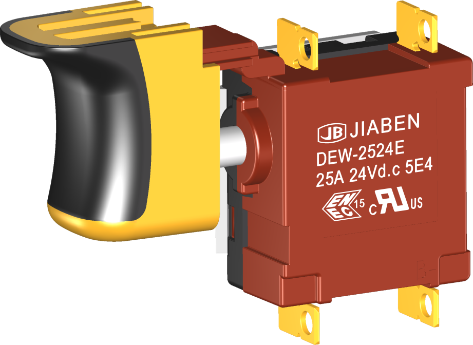 DEW series are one general type DC variable speed trigger switches, integrated dustproof and mechanical brake contact, without reversing box, commonly for used in DC portable power-tools and gardening tools such as: Cordless Rotary Hammers, Cordless Reciprocating Saws, Cordless Jig Saws, Cordless Angle Grinders, Cordless Grass Trimmers, Cordless Blowers, etc.