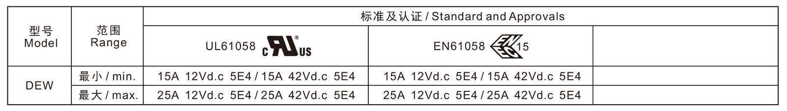 →最大电流 Max. current at 42Vd.c 25A