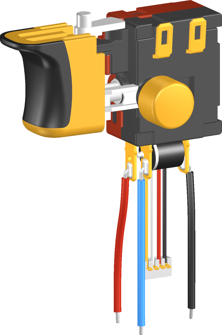 DPK系列是一款通用型的直流扳机开关,集成防尘机械刹车接点,内部带换向结构,应用于各类直流充电式手持电动工具,如:充电式电钻、充电式电锤、充电式电圆锯、充电式螺丝起子、充电式冲击扳手等,也可应用各类直流无刷电动工具。
