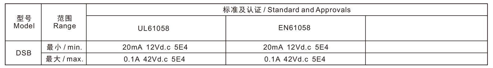→电气耐久寿命 Electrical life endurance ≥5E4
