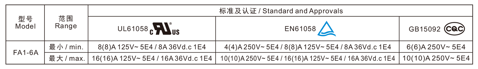 电气参数和认证 Electric Rating and Certification