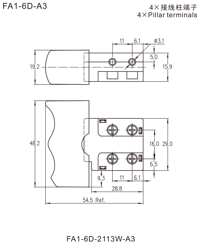 →2×接线柱端子Pillar terminalsφ=2.8mm