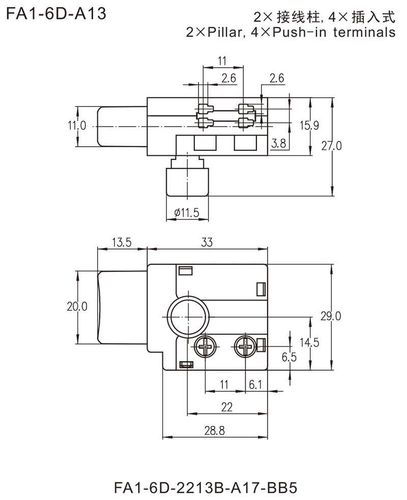 →2×接线柱端子Pillar terminalsφ=2.8mm