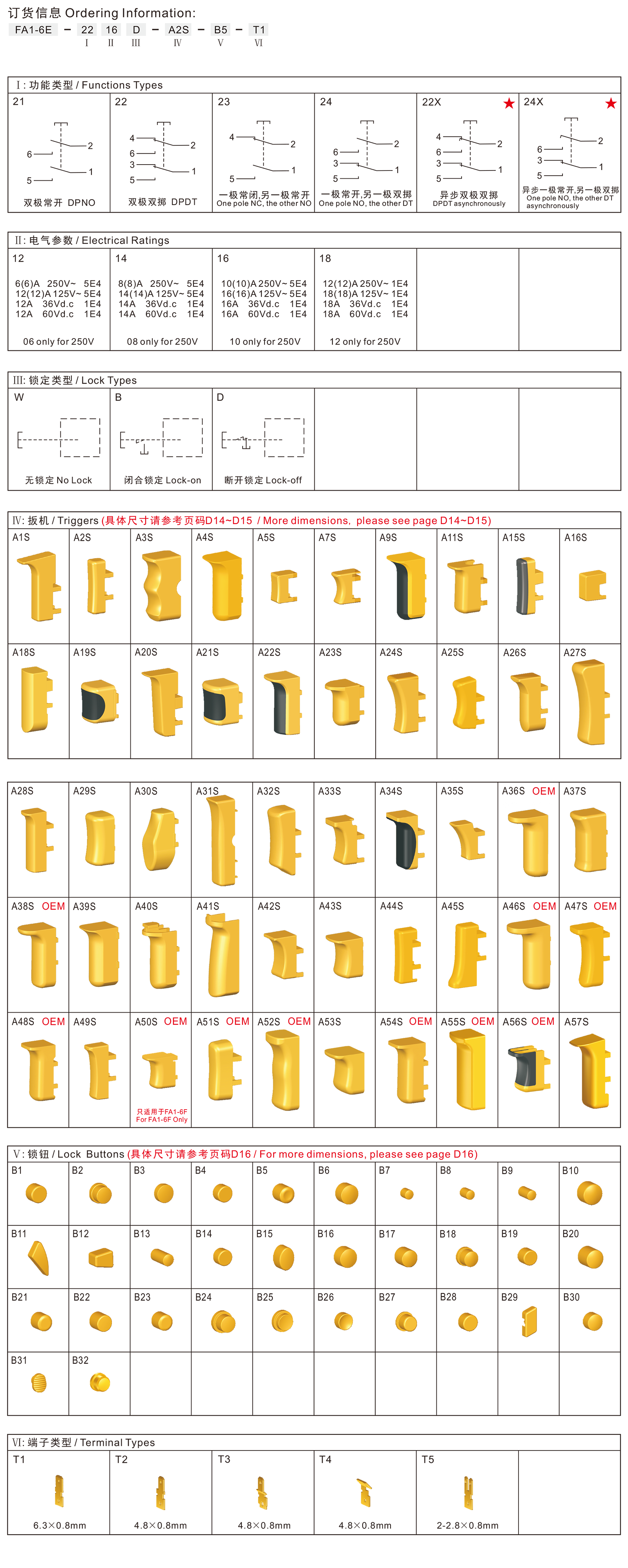 ◆FA1-6E series are general type trigger switches, integrated dustproof, with snap-action structure, commonly for used in portable power tools such as Electric Drills, Rotary Hammers, Reciprocating Saws, Jig Saws, Angle Grinders, Electric Mixers,Cut-Off Machines, Marble Cutters, Electric Routers, Circular Saws, Belt Sanders, Orbit Sanders, Polishers, Electric Planers, Electric Sprayers, Electric Nailers, etc. Besides, they are also suitable for power gardening tools, such as Grass Trimmers, Electric Chain Saws, Electric L awnmowers, Electric Snowthrowers, etc.