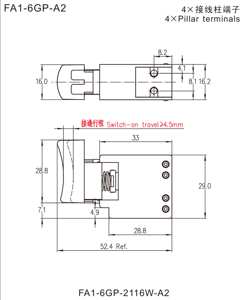 The switch-on travel ≥6.2mm with employ special “L” triggers