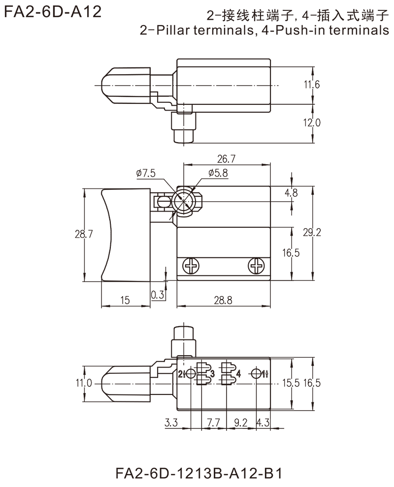 FA2-6D, FA2-6DX, FA2-6DY防尘扳机开关