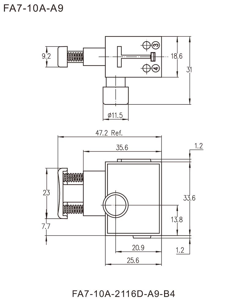 →接线柱端子Pillar terminals φ =3.5mm