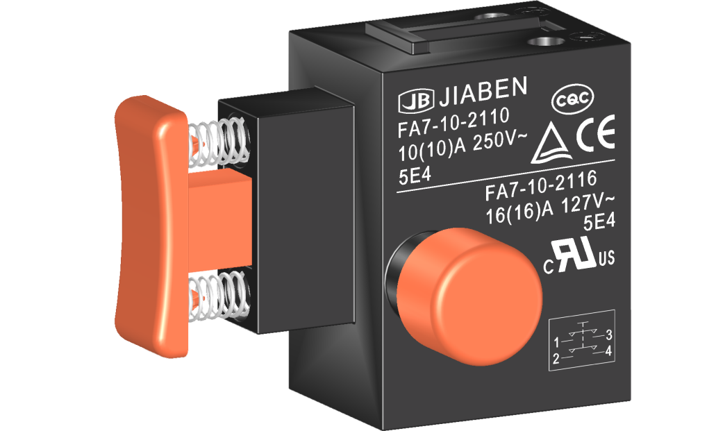 FA7-10 series are one general type trigger switch, with snap-action structureoptional integrated dustproof, for used in power-tools and gardening tools such as Electric Mixers, Circular Saws,Jig Saws, Polishers Grinders, Electric Planers, Rotary Hammers, Demolition Hammers, Miter Saws, Cut-off Machines, Electric Chain Saws, Electric Lawnmowers, etc.
