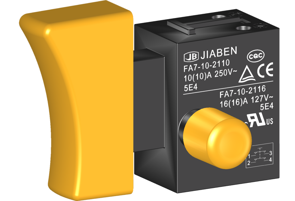 FA7-10 series are one general type trigger switch, with snap-action structureoptional integrated dustproof, for used in power-tools and gardening tools such as Electric Mixers, Circular Saws,Jig Saws, Polishers Grinders, Electric Planers, Rotary Hammers, Demolition Hammers, Miter Saws, Cut-off Machines, Electric Chain Saws, Electric Lawnmowers, etc.
