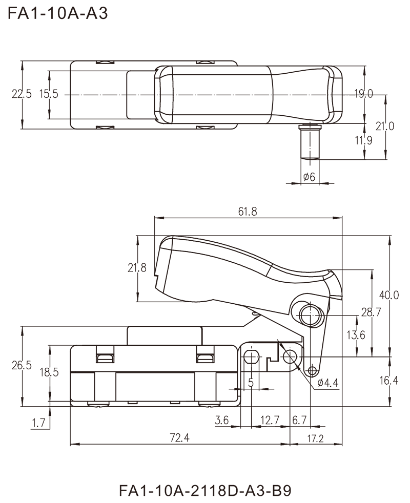 ◆FA1-10A series are general type high rated trigger switches,integrated dustproof, with snap-action structure, for used in high rated bench top or portable power-tools such as Cut-off Machines,Miter Saws, 150mm, 180mm and 230mm Large Angle Grinders, Polishers, Circular Saws, Rotary Hammers, Demolition Hammers, Electrics Chain Saws, etc.