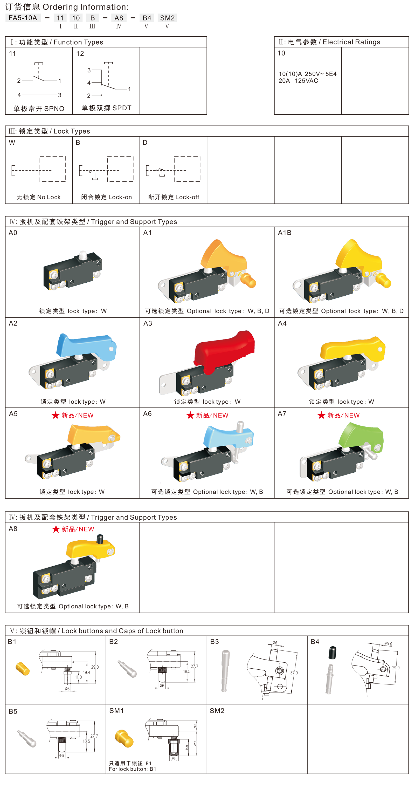 ◆FA5-10A, FA5-10B系列是一款通用性的扳机开关,集成防尘功能,内部为快速动作结构,适合一般功率的电动工具,如:型材切割机、斜切锯(介铝机)、125和150角磨机、电锤、电镐等。