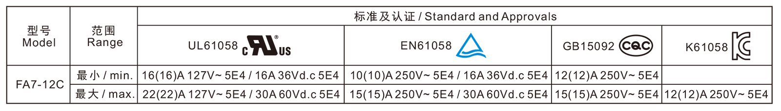 FA7-12C series are special type high rated trigger switches,