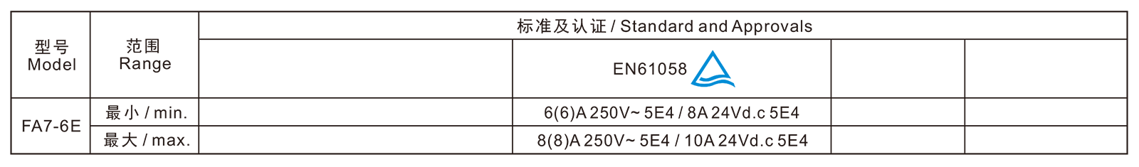 电气参数和认证 Electric Rating and Certification