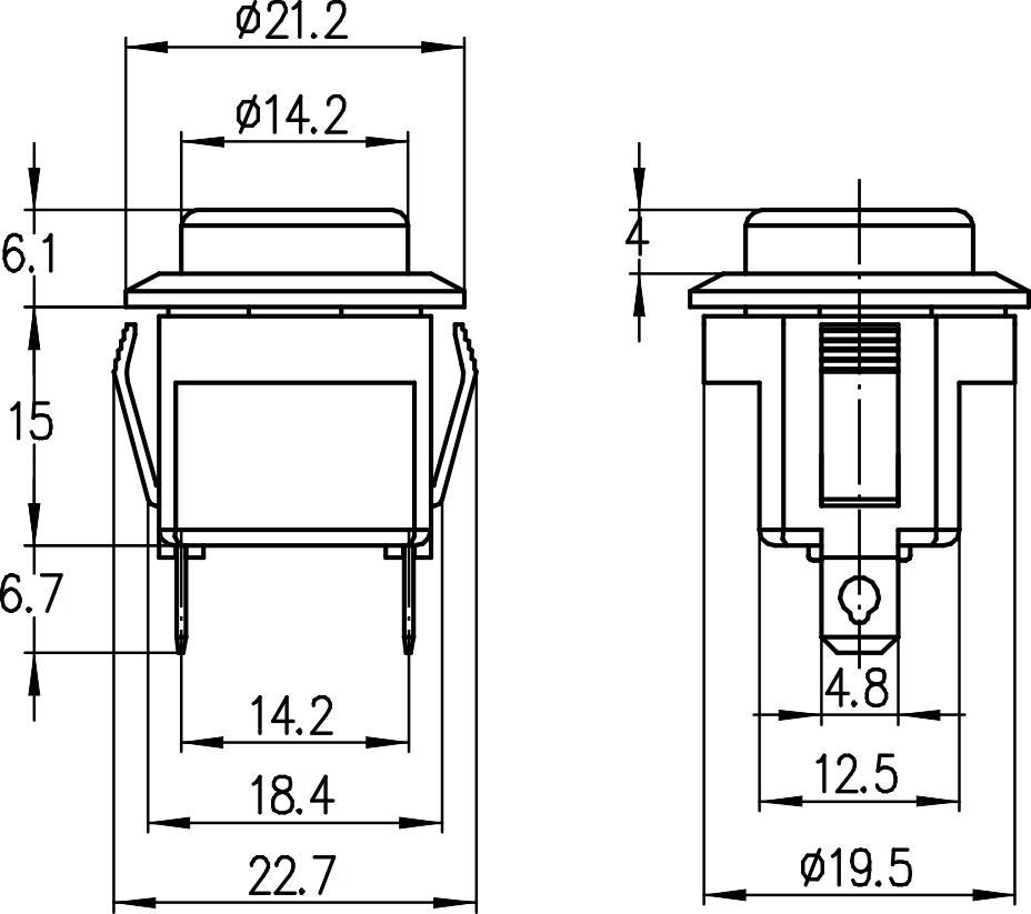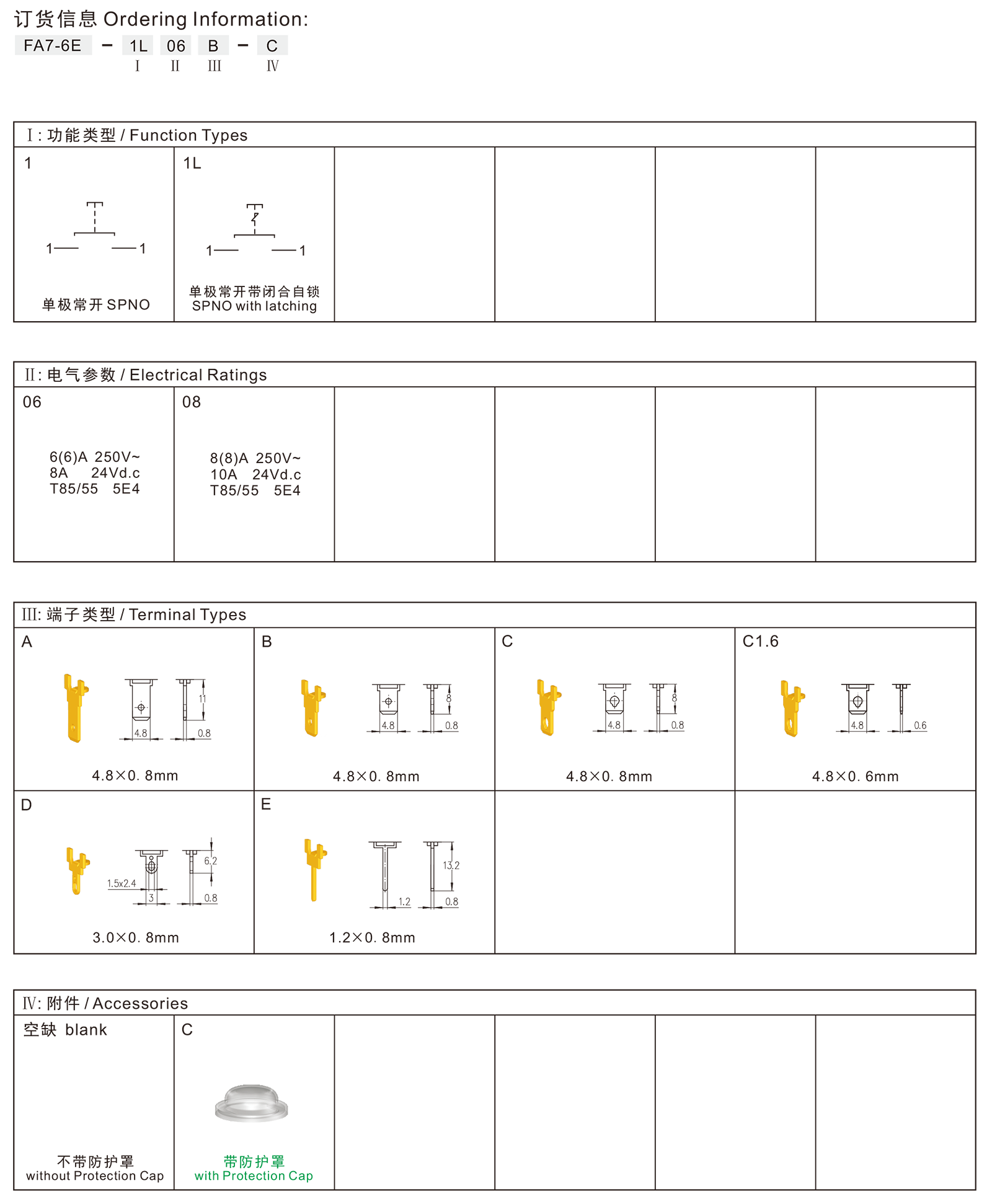 →插片端子 Plug-in terminals 4.8×0.6mm