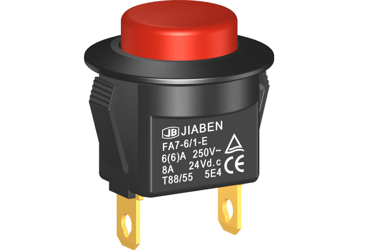 FA7-6E series are special type push-button switch, commonly for used in home appliances or gardening tools such as Vacuum Cleaners, Chargeable Lights, Table Lights, Grass Trimmers, etc.