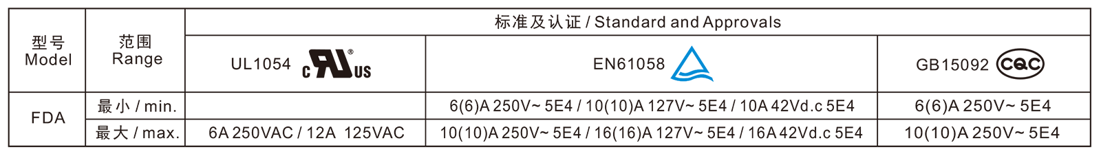 电气参数和认证 Electric Rating and Certification