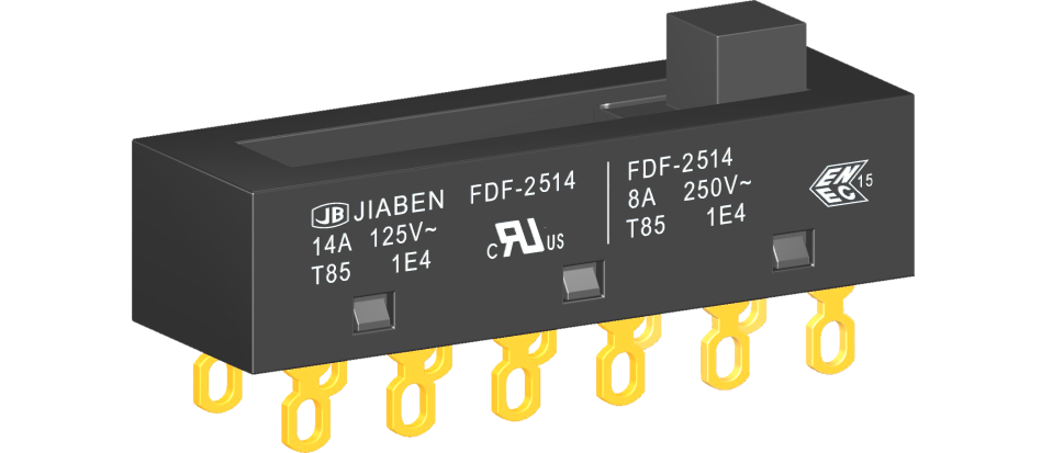 ◆FDF series are general type slide switches, commonly for used in power-tools and small home appliances such as Heat Guns, Blowers, Hair Dryers, Electric Fans, Electric Heating Apparatus, Cooking Machines, etc.