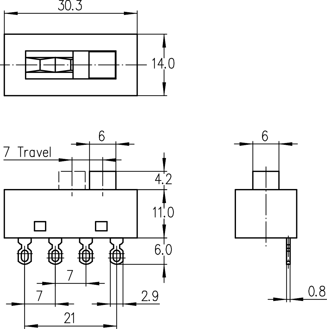 →焊接端子 Soldering terminals 2.8×0.8mm