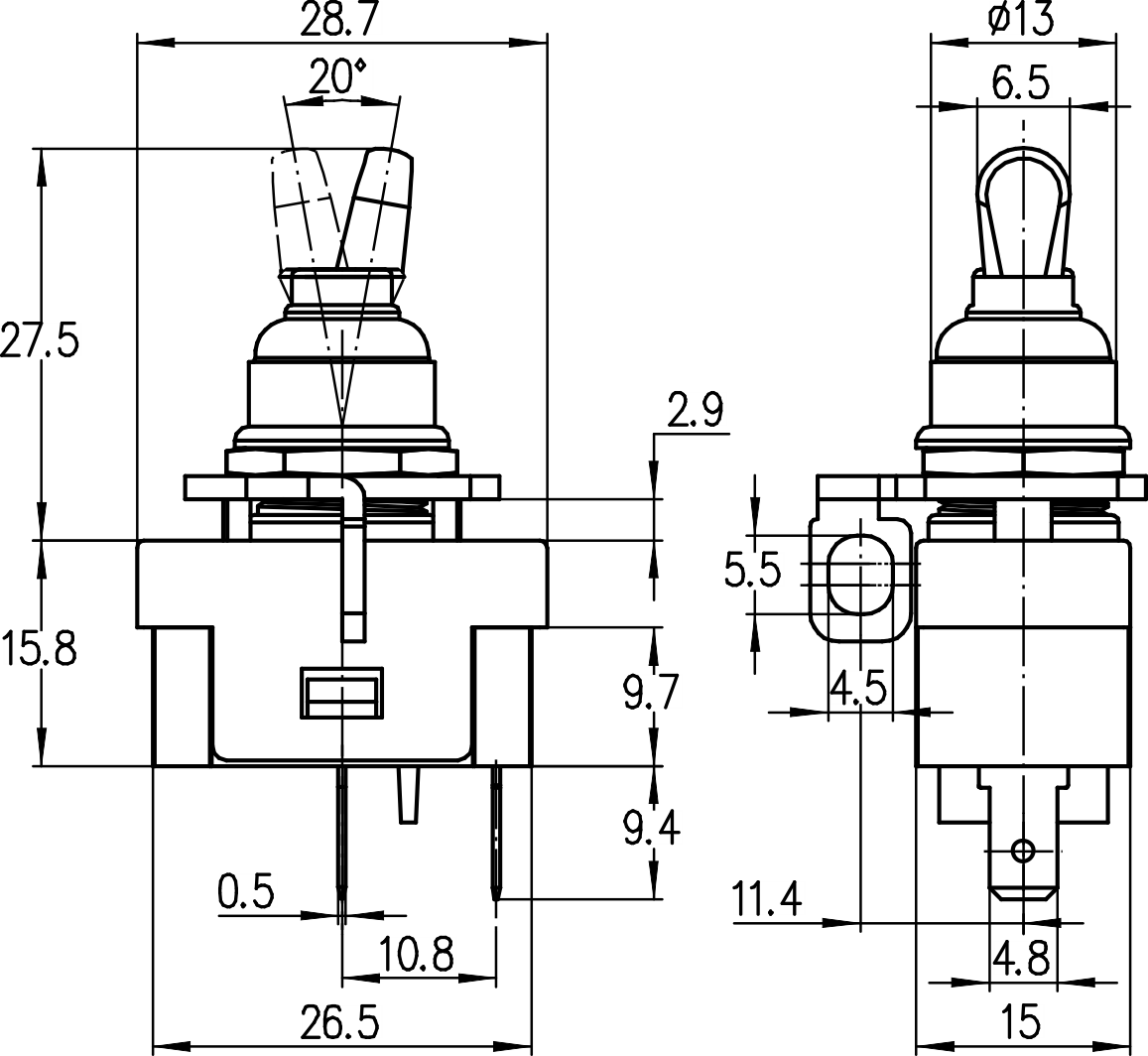 →插片端子 Plug-in terminals 4.8×0.5mm