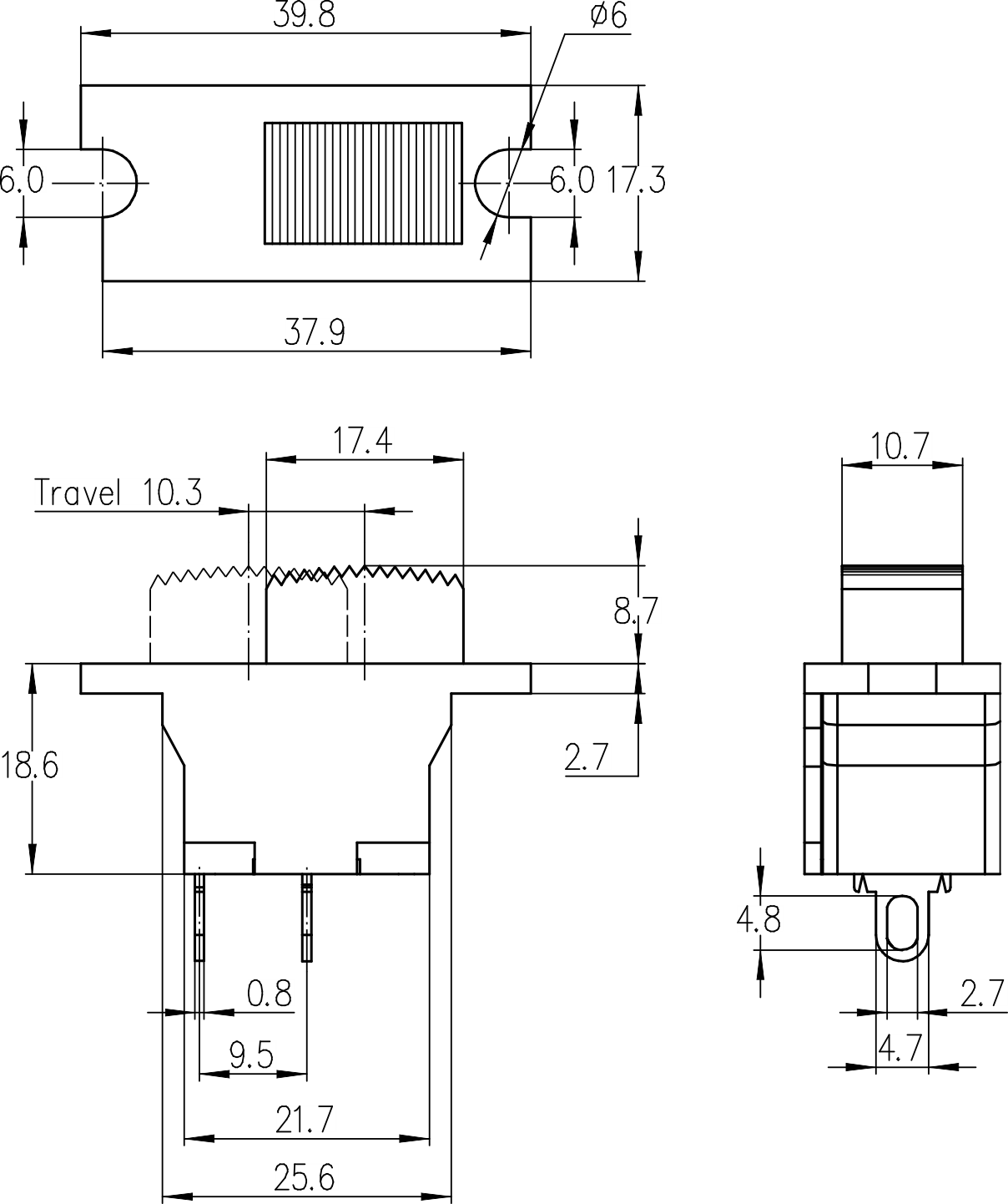 →插片端子 Plug-in terminals 4.8×0.8mm