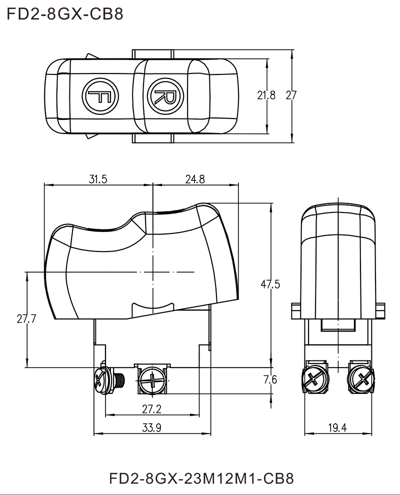 →插片端子 Plug-in terminals 4.8×0.8mm