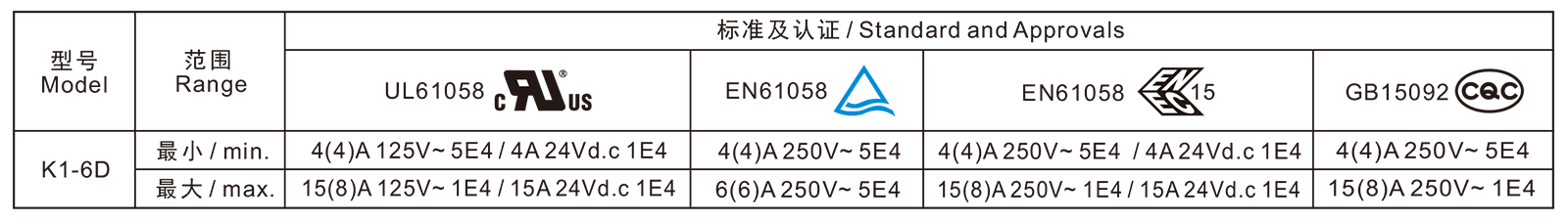电气参数和认证 Electric Rating and Certification