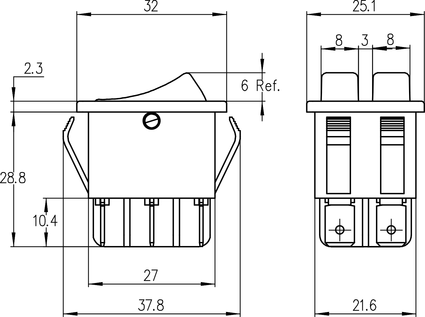 →插片端子 Plug-in terminals 6.3×0.8mm