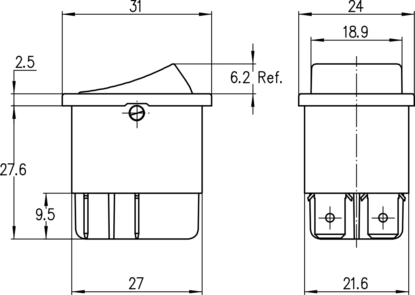 →插片端子 Plug-in terminals 6.3×0.8mm