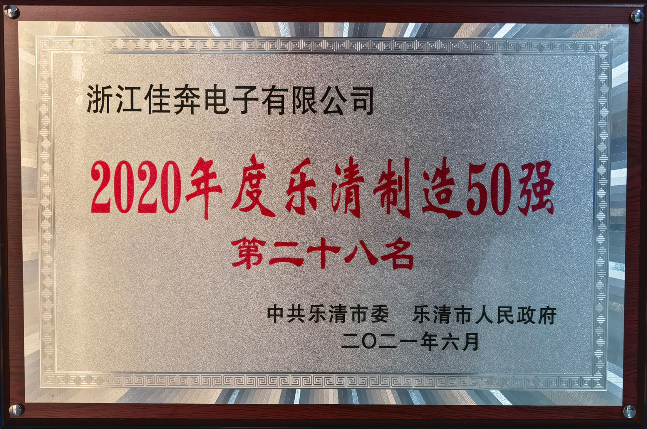 2020年度乐清制造50强第28名