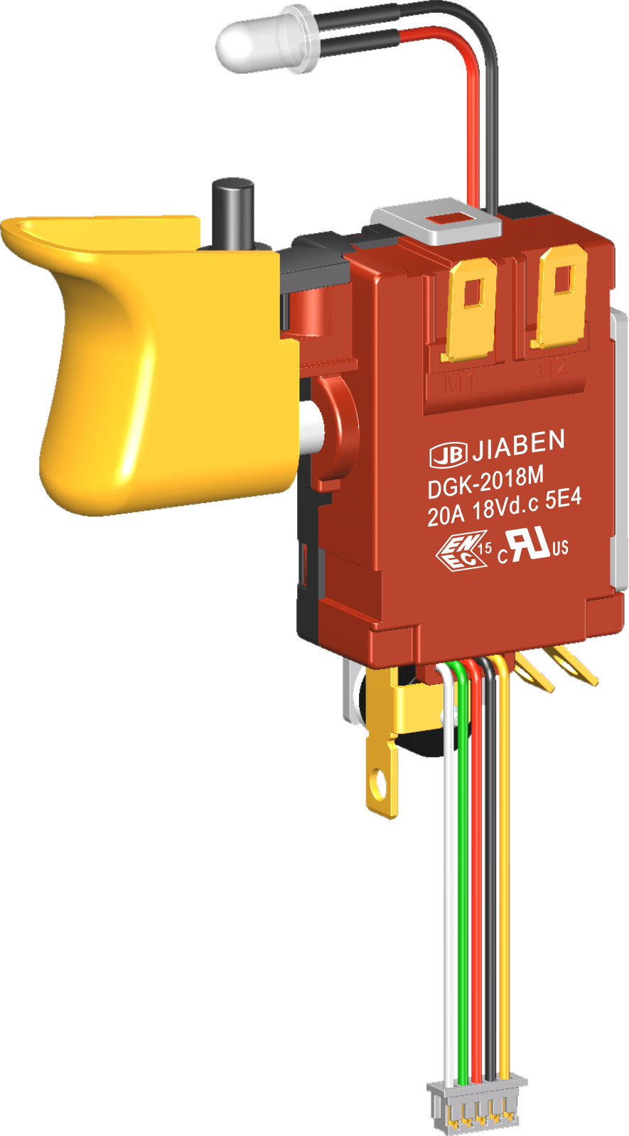 我司主要产品:微动开关、跷板开关、按钮开关、扳机开关、调速开关和电位器开关等各类交、直流器具开关和各类交、直流线路板模块,应用于交、直流电动工具、电动园林工具、清洁器具、家用电器和小型机床等行业。 Our company main products: micro switch, rocker switch, push button switch, trigger switch, speed switch and potentiometer switch and other kinds of a